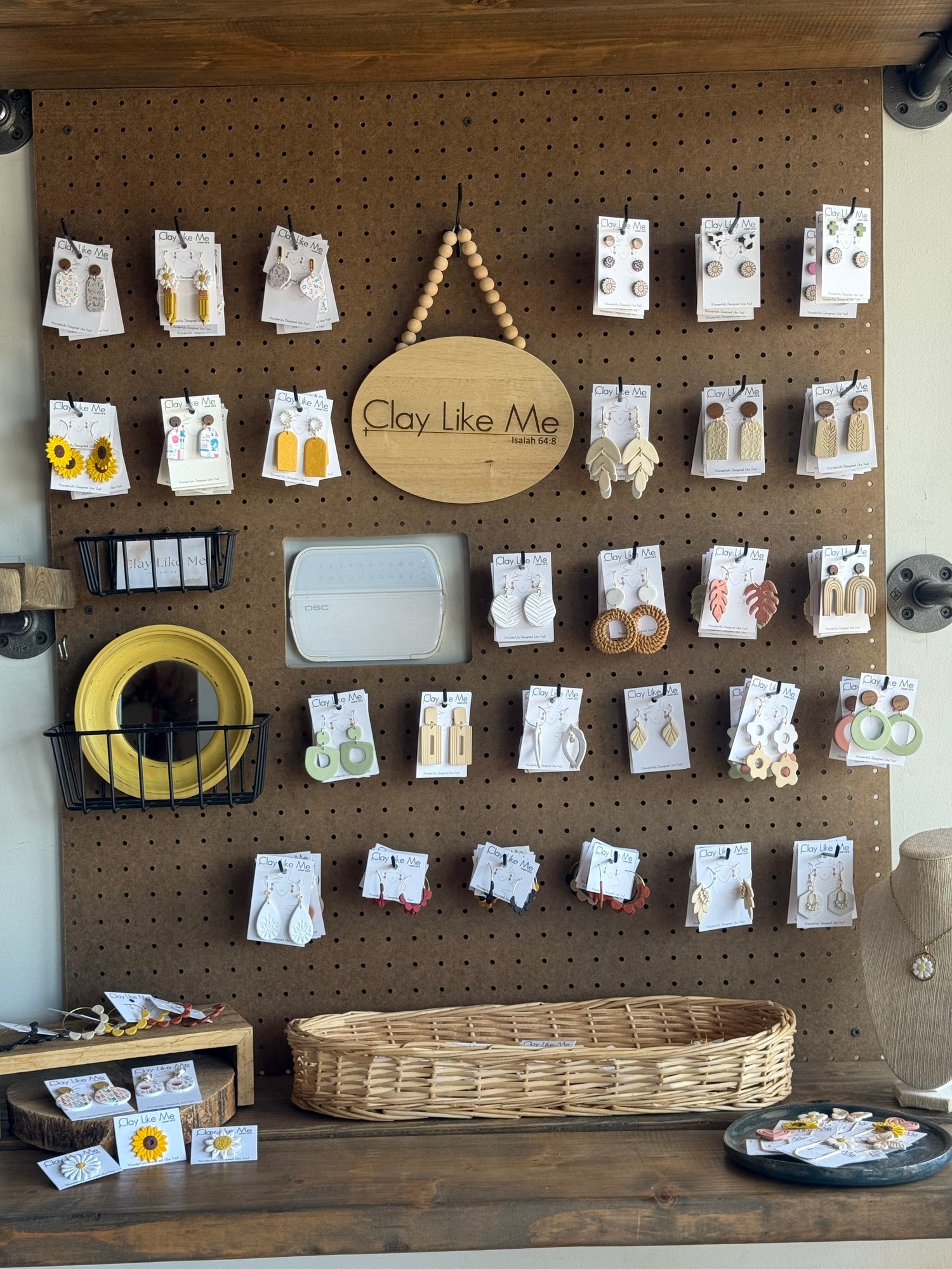 Shop my Clay Like Me earrings and accessories at Milk & Honey Coffee Co. located at 2200 SE 29th St, Topeka, KS 66605.