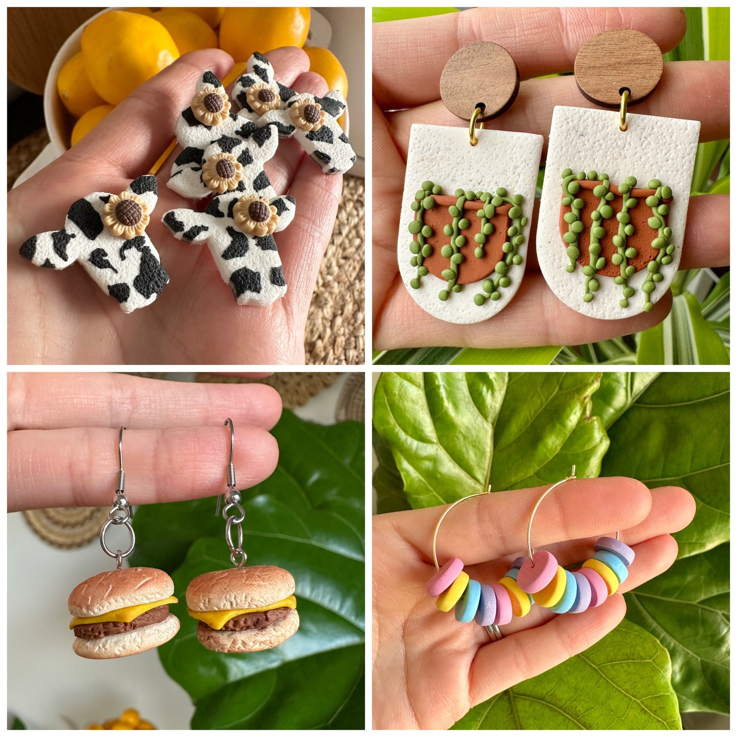 Clay Like Me products are made with polymer clay. This type of clay is versatile, waterproof, flexible and easy to work with. Once it has been cut to the desired shape, it is then oven baked. Each pair of earrings are one of a kind, lightweight and easy to wear. You'll sometimes even forget your are wearing them!