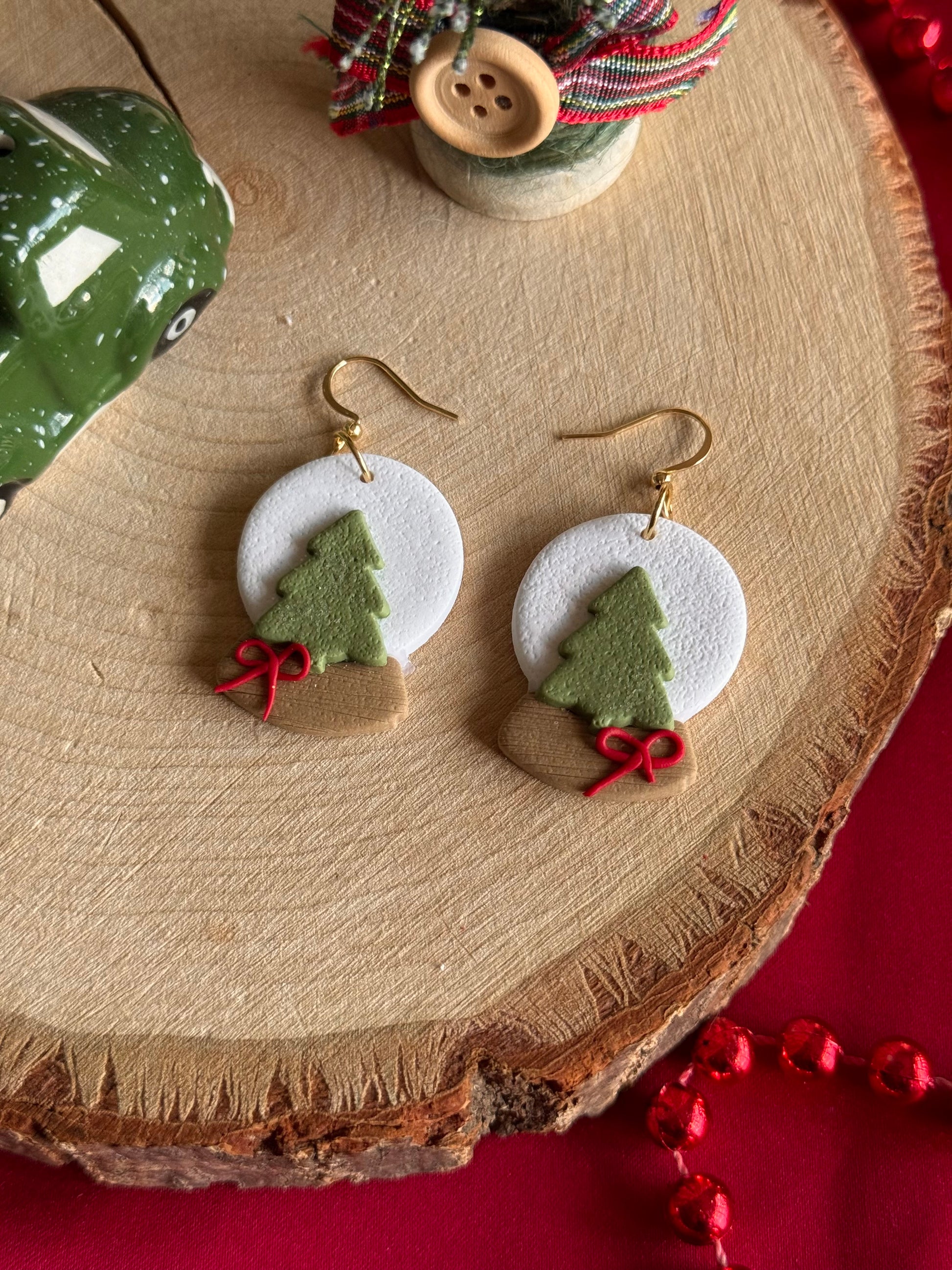 These adorable polymer clay snow globe earrings capture the charm of a winter wonderland. Each earring features a tiny green Christmas tree adorned with a cute red bow, encased in a delicate snow globe design that’s perfect for spreading festive cheer. Lightweight and handcrafted with care, they’re ideal for adding a playful, seasonal touch to any outfit or gifting to someone who loves the holidays.