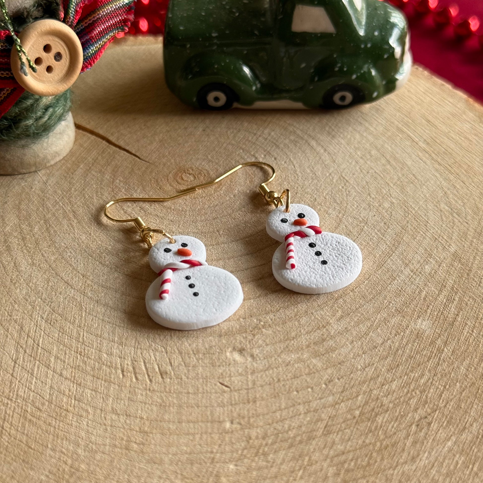 Bring a sprinkle of winter magic to your holiday style with these adorable Candy Cane Frost earrings! Each earring features a cheerful little snowman wrapped in a festive candy cane striped scarf. With delicate details like a tiny carrot nose and adorable button accents, these earrings capture the whimsical charm of a snowy winter day.
