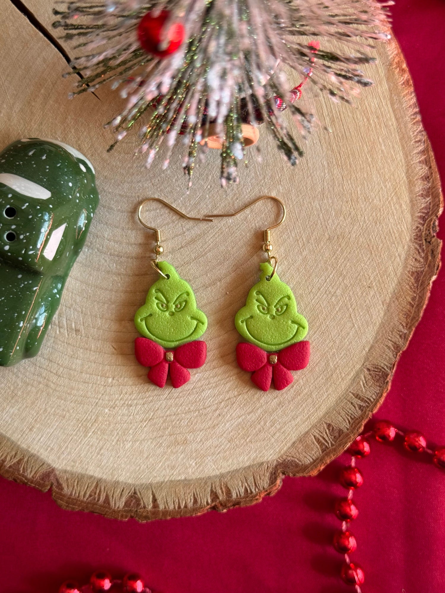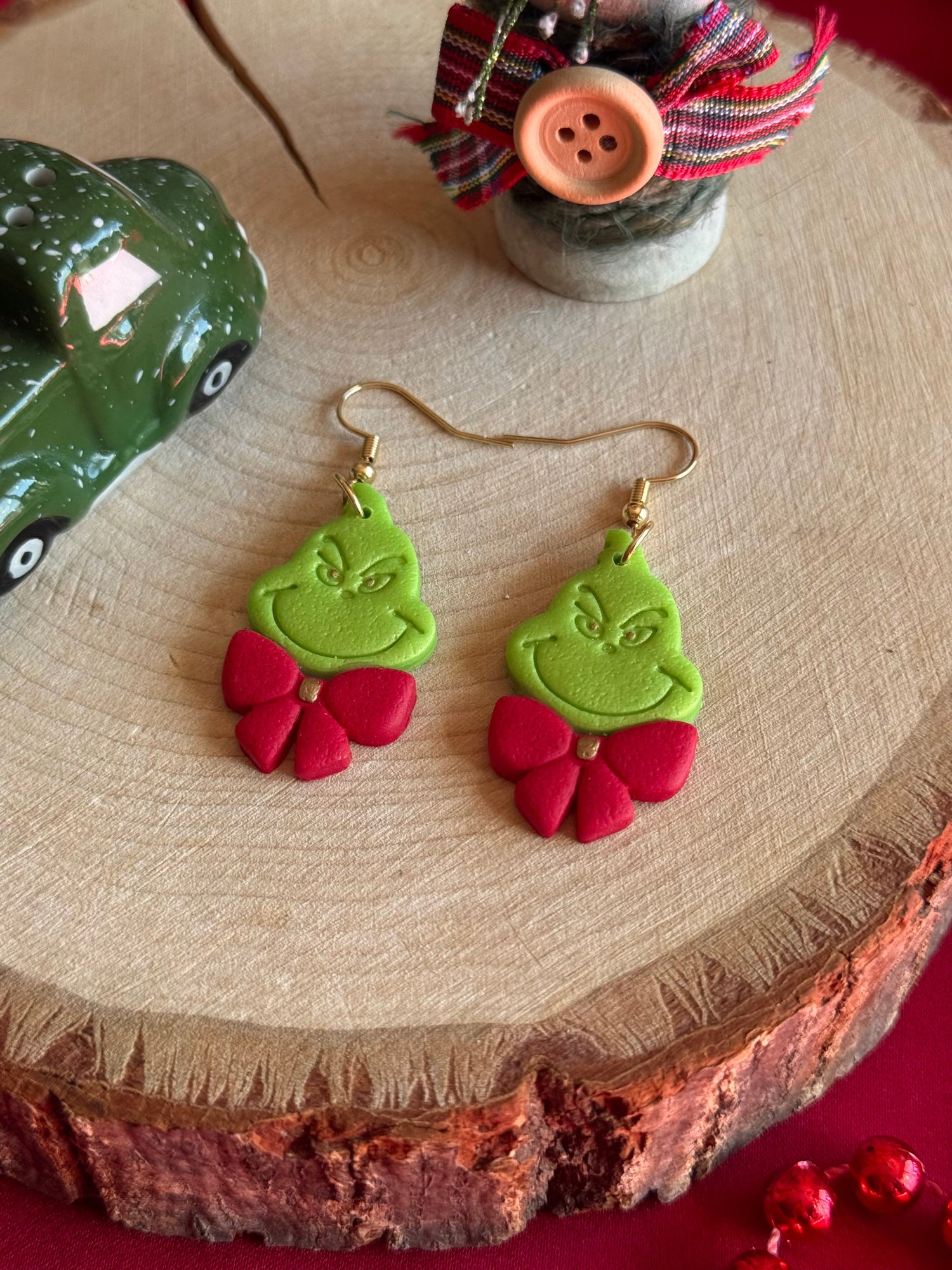 Bring a little mischievous holiday spirit to your look with these playful Grinch-inspired earrings! Carefully handcrafted, each pair captures the classic green grin and holiday charm of everyone’s favorite Christmas curmudgeon.