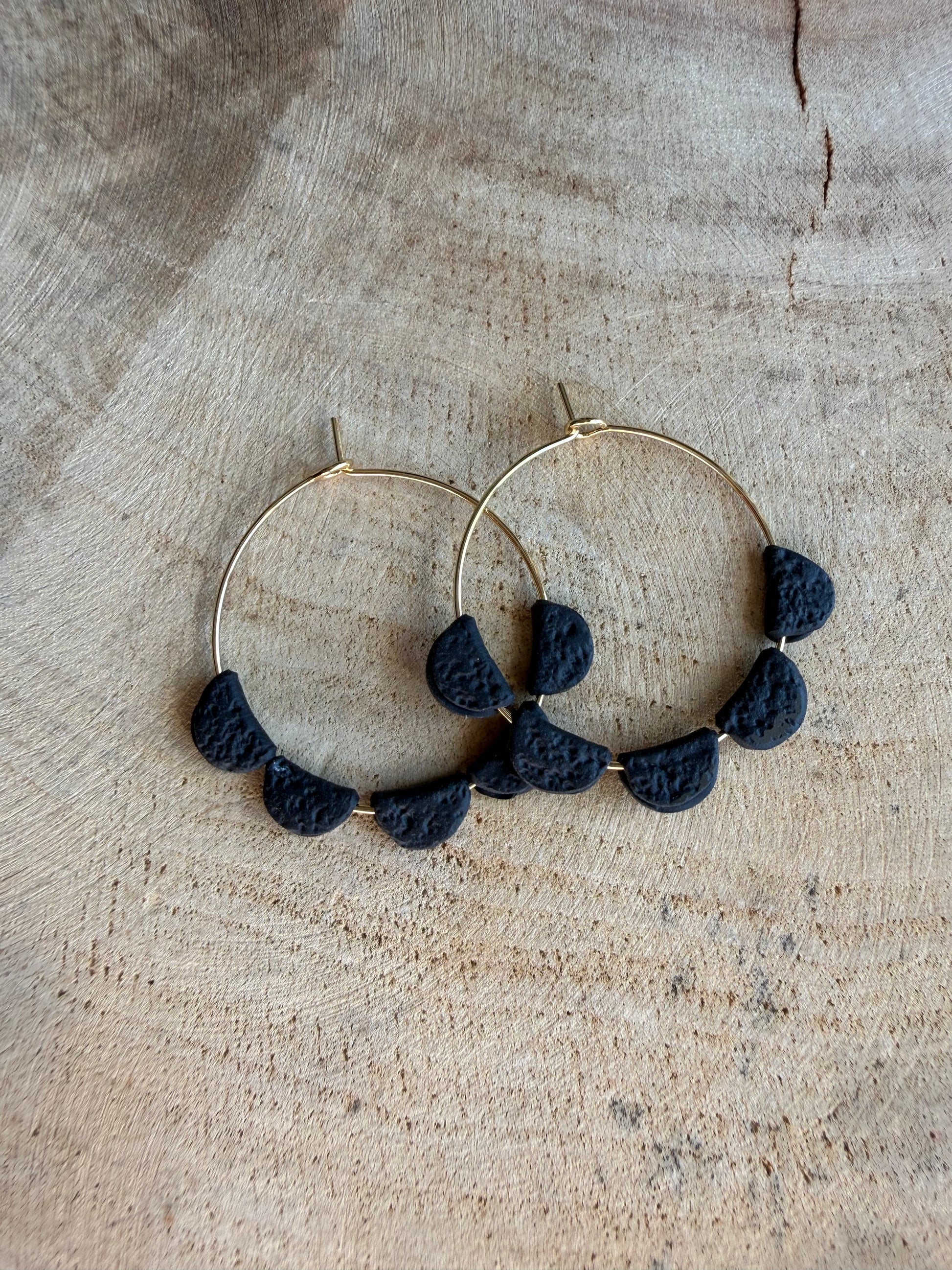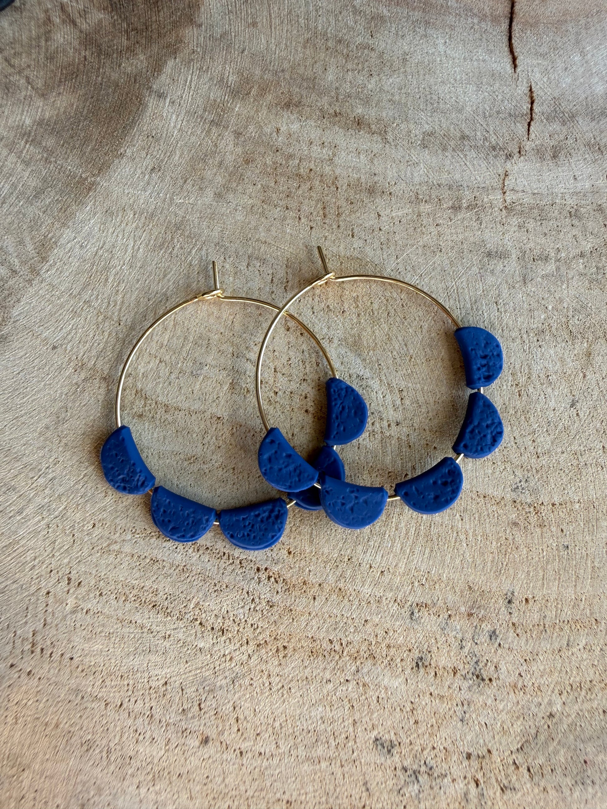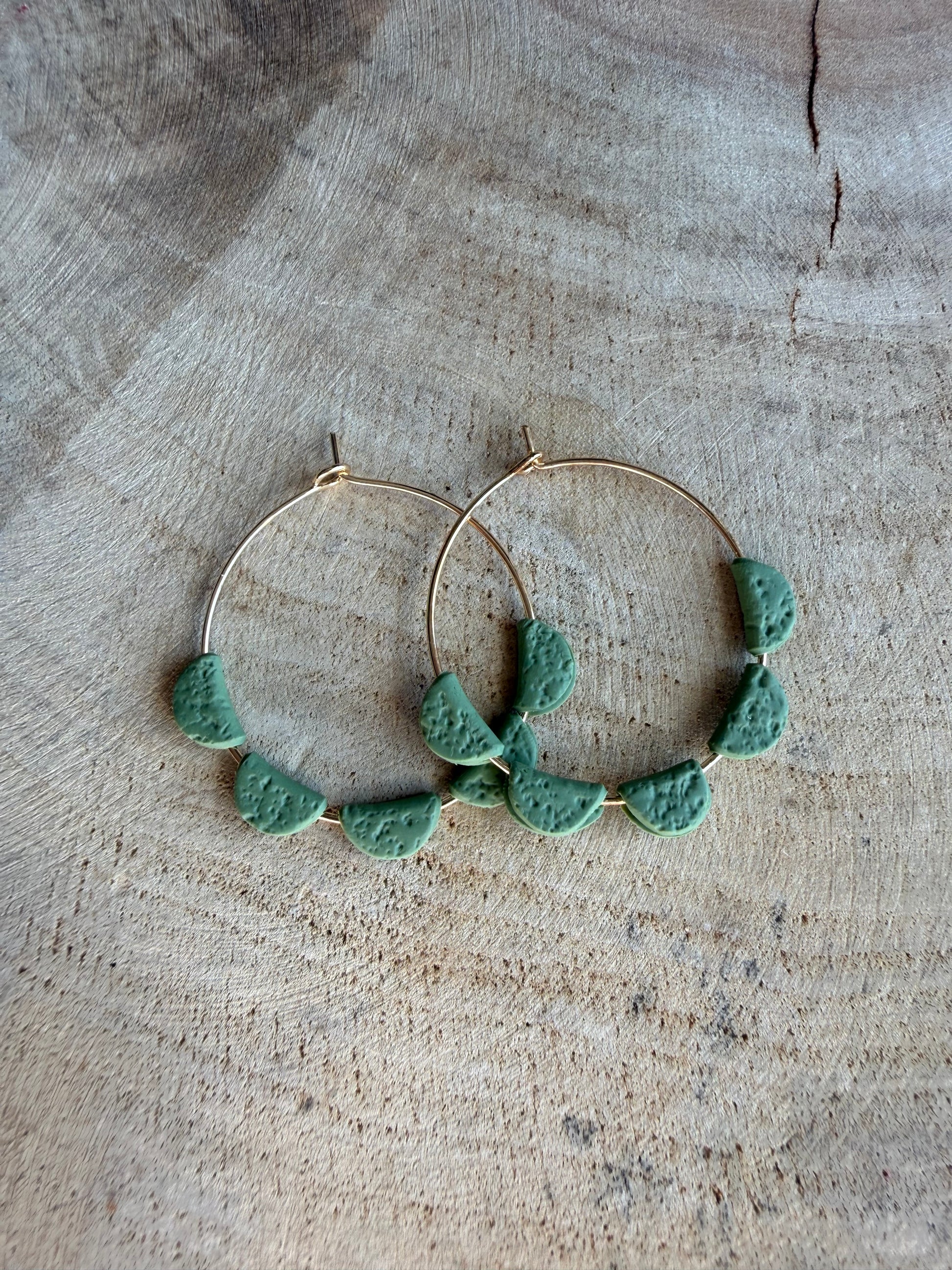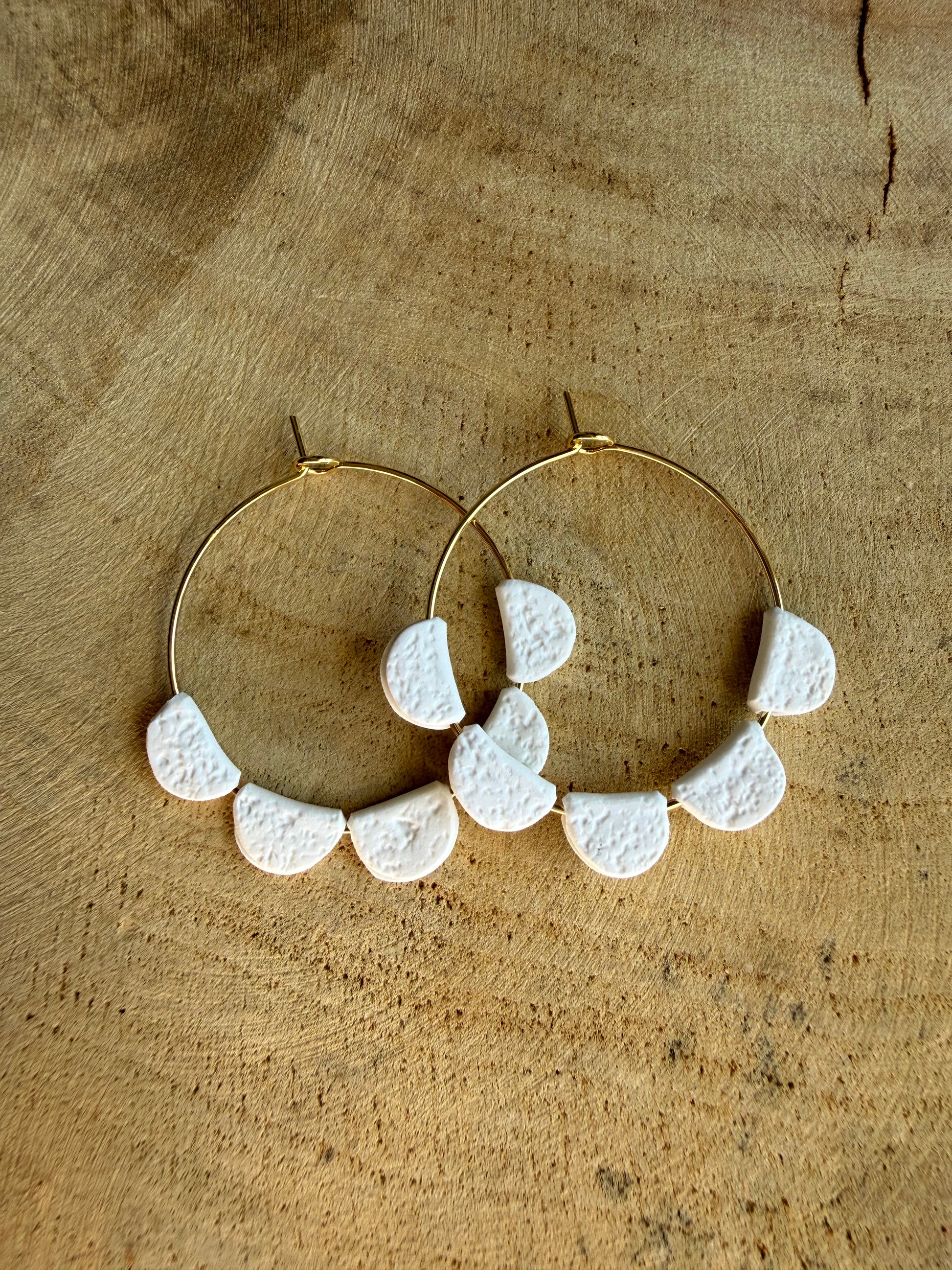 Meet your new everyday favorites: the Scalloped Josie Clay Hoops! These earrings blend modern simplicity with handcrafted texture, featuring delicate scalloped polymer clay charms on sleek gold hoops. Each pair is hand-formed and textured for a subtle artisan finish, giving them a unique look that complements any outfit.