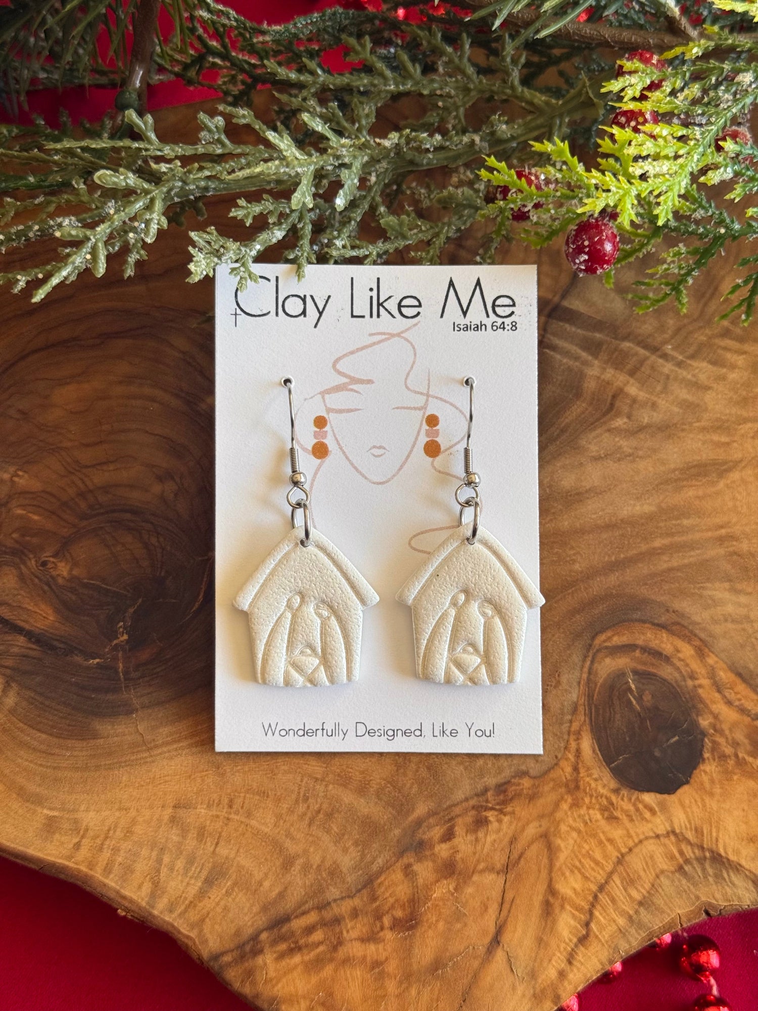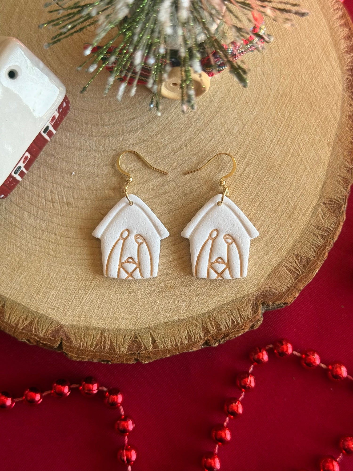 Celebrate the true meaning of the season with these beautiful Nativity earrings. Each pair features a delicate scene of the Holy Family, lovingly detailed in soft white polymer clay to capture the serenity and grace of that first Christmas night.