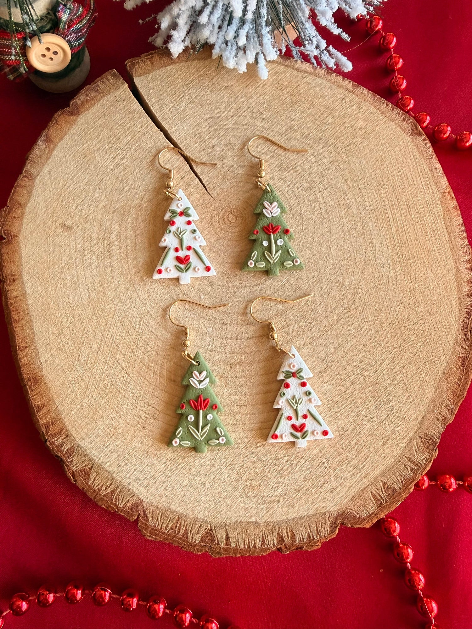 Celebrate the warmth and charm of the season with these delightful folk art Christmas trees. Each one lovingly handcrafted from polymer clay. Every tree is detailed by hand, featuring whimsical patterns, and vibrant holiday colors inspired by traditional folk art.