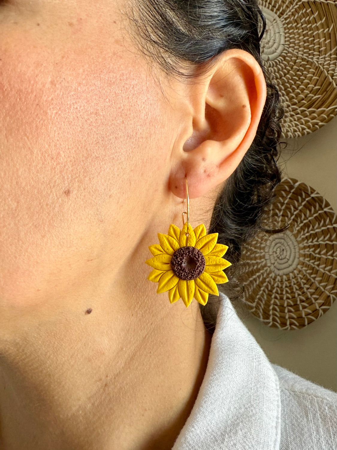 Beautiful detailed sunflower earrings. Every pair is made by hand, embracing small, intentional imperfections that give each piece its own soul and character. Lightweight and versatile, they’re perfect for everyday wear, special moments, and everything in between.