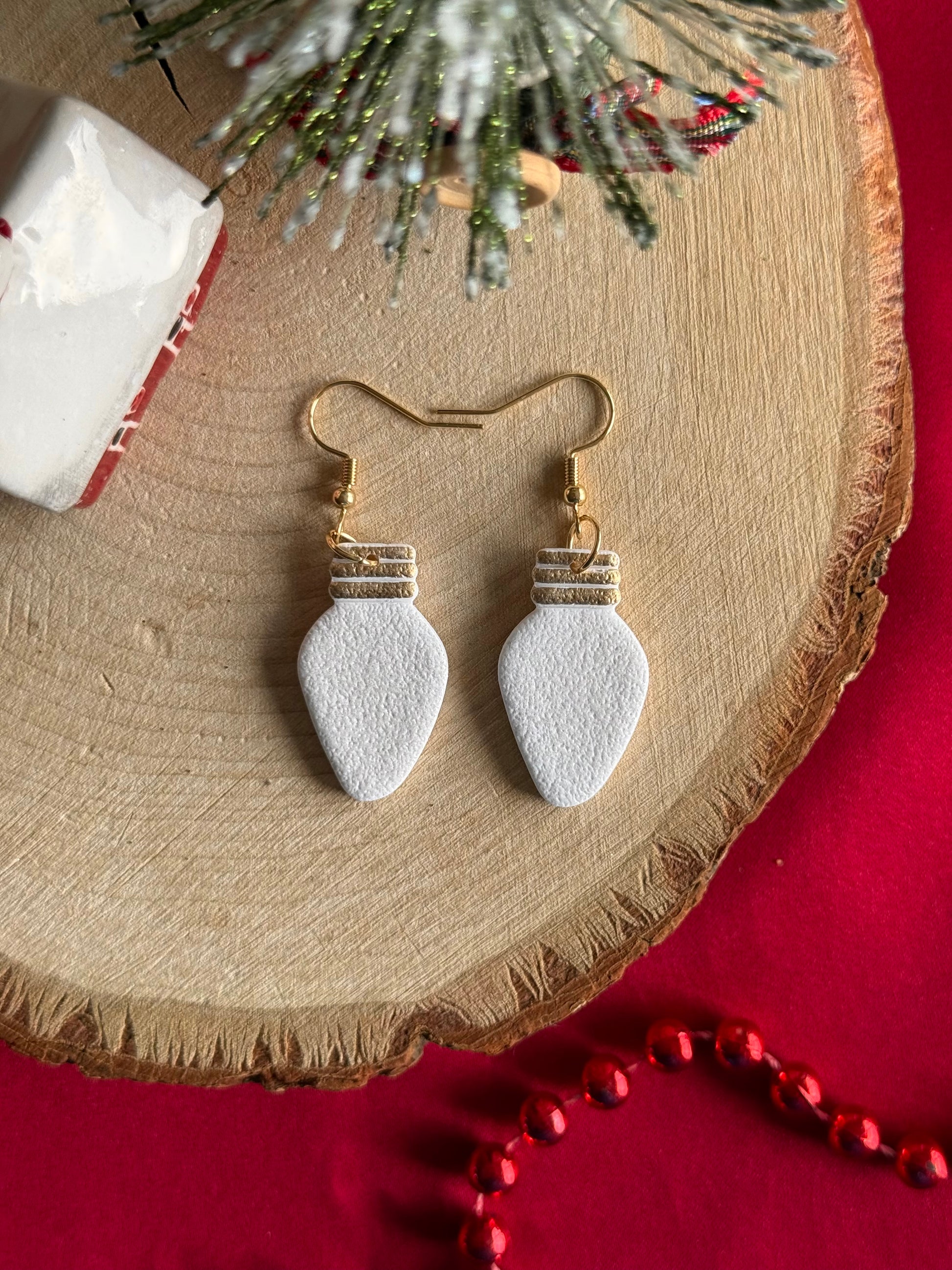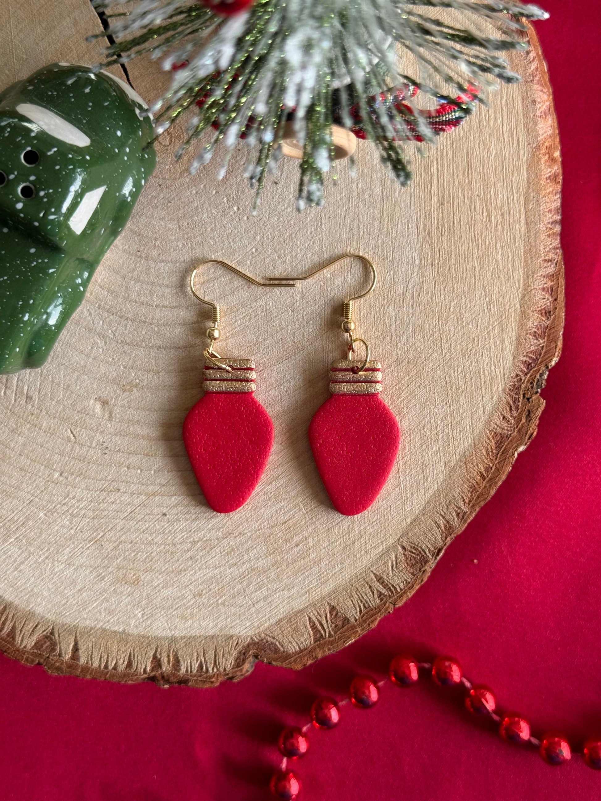 Light up your holidays with these Twinkle Bright earrings inspired by the classic glow of Christmas lights! Each piece is lovingly handcrafted from polymer clay, shaped like a tiny vintage bulb and finished with a festive shine.