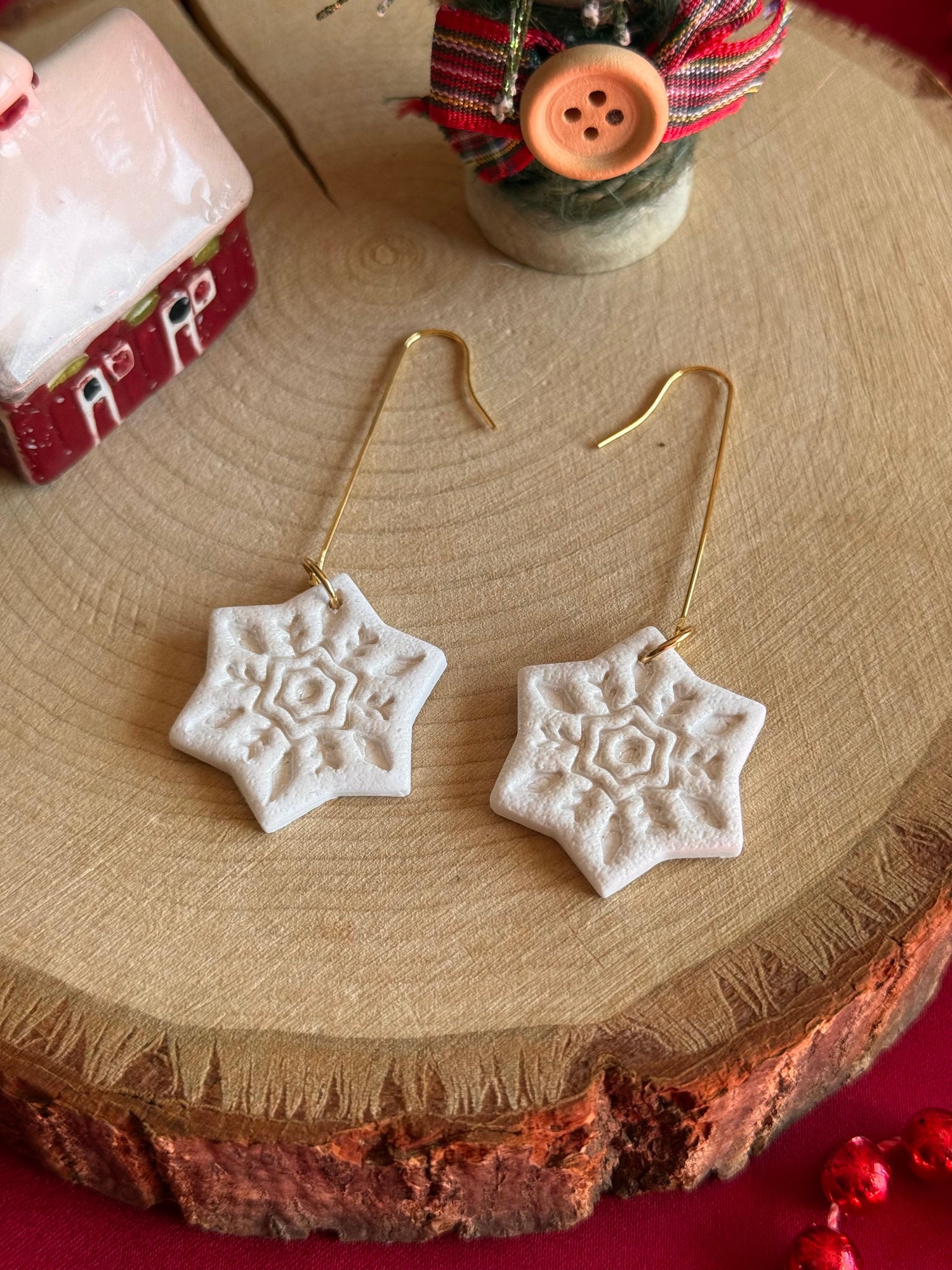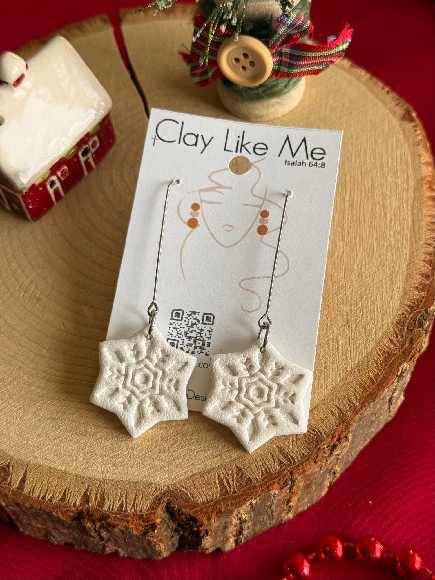 Capture the magic of winter with my Snowflake earrings. Handcrafted from white polymer clay, each earring showcases intricate details that sparkle with a quiet, icy elegance.